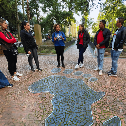 Neste passeio ressaltamos a presença negra na capital, através de narrativas que demonstram participação direta nas atividades econômicas, influência africana na cultura regional, através do carnaval, do batuque e das práticas religiosas. Destacando a memória e resistência negra, que permanece viva e atuante em Porto Alegre.